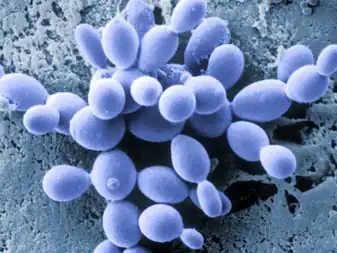 - Candida albicans, a yeast that attacks the mucous membranes, can cause an infection of the mouth or vagina called thrush or candidiasis, and is also blamed for "yeast allergies".