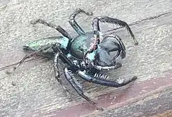 - ^ Forster, Lyn (30 January 2012). "Visual mechanisms of hunting behaviour in Trite planiceps, a jumping spider (Araneae: Salticidae) Lyn". New Zealand Journal of Zoology. 6: 73–93. doi:10.1080/03014223.1979.10428351.