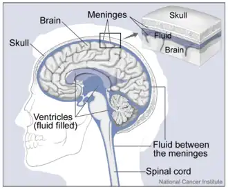 One common medical test used when diagnosing aseptic meningitis is lumbar puncture.[3] A medical professional inserts a needle between two vertebrae to remove cerebrospinal fluid (CSF) from the spinal cord.[6] The cerebrospinal fluid collected from the lumbar puncture is analyzed by microscope examination or by culture to distinguish between bacterial and aseptic meningitis. Samples of CSF undergo cell count, Gram stains, and viral cultures, and polymerase chain reaction (PCR). Polymerase chain reaction has increased the ability of clinicians to detect viruses such as enterovirus, cytomegalovirus, and herpes virus in the CSF, but many viruses can still escape detection. Other laboratory tests include blood, urine, and stool collection. Medical professionals also have the option of performing a computed tomographic (CT) scan or magnetic resonance imaging (MRI), these tests help observe calcifications or abscesses.[3]