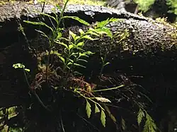 In Tasmania Asplenium appendiculatum grows in wet sclerophyll forests, fern gullies and rocky outcrops on low mountain summits.[3] It often grows as an epiphyte on Dicksonia antarctica and on logs and other tree species.[1]