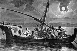 Abdillahi became the Nacouda of the Nasseri. In Zeila, Sharmarke quickly learned of this. After an initial moment of anger, he decided to take advantage of the situation and instructed Abdillahi to recruit his crew exclusively from his kin. Abdillahi thus surrounded himself with trustworthy men, either family or clan members, almost all of whom were Issas or Gadaboursis originating from the Zeila region. From the outset, Lambert had placed himself in the hands of people who, by their origin, depended on his personal enemy.[14][38][39] The Nasseri's crew was organised as follows: Abdillahi bin Edlie served as the Nacouda, with his brother, Robly Gely Edlie, acting as Second. Assowah Gedy, a cousin of the Nacouda, worked as a sailor alongside Gely Gedy, Farah Edlie (also known as Harrer), Ali Sanguely, Farah Ouroueni, El Terre, Durbadi, and Wahbirrie Bahdoon. Farah Roblie, the Nacouda's brother-in-law, served as the Mousse, while Mahomed Abouker, Gely Gedy's brother-in-law, was also part of the crew. Additionally, Lambert Henri traveled as a passenger, accompanied by his servant, Balassa.[40]