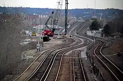 Adding a commuter rail station at Assembly Square was listed as a possibility in 2012 as an interim air quality mitigation measure in response to delays building the Green Line Extension[7] However, such a station could not be completed by 2015, and the project was not supported by MassDOT.[7] The station would have required building separate platforms for the Haverhill Line and the Newburyport/Rockport Line, which split near the station site.