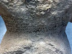 The Assyrian statue (British Museum number 124963) was originally set up near the temple of Ishtar in Nineveh (near the modern city of Mosul in northern Iraq). The statue remains the only known Assyrian statue of a naked woman.[1] The inscription shows it was intended "for titillation"[2] or "to be alluring",[3][4] and may represent an attendant of Ishtar, or Ishtar herself in her role as the goddess of love. The statue was first dated by E. A. Wallis Budge as being c. 1080 BCE.[5][1]
