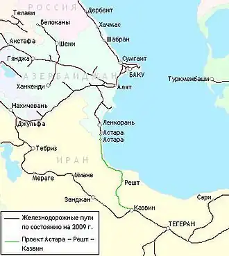 - ^ "Завершение строительства ж/д участка Решт – Астара ожидается к 2028 году". www.rzd-partner.ru (in Russian). Retrieved 2024-12-09.