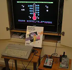 AtariLab came about after Laws saw a thermistor dipped into ice water being sampled and graphed on an expensive laboratory system.[1] Instead of having to periodically sample a thermometer and then use the data to produce a graph, the computer was creating this in real time, and "it blew me away."[2] Considering a common experiment carried out by students, producing a cooling curve for hot water, the system would reduce perhaps 15 to 20 minutes of work to a few moments. This would free up so much time the students would be able to carry out multiple experiments in a typical lab period, perhaps testing the effects of insulation, or producing curves for different materials in a single sitting.[3]