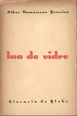 In the field of prose literature, the novels Moleque: novelinha de arrabalde (1938) and Menininha (1941) are highlights, as well as the short story book Persianas Verdes: contos e manchas (1967), which set prosaic characters in the humble settings of the streets and houses of the periphery, in the bars and popular parties, leading often miserable, sad and meaningless lives, lost in unsatisfied dreams of freedom and justice and excluded from the bright hustle and bustle and big events of urban centers, a theme that knew great vogue at the time.[3][17] The author acknowledged his special debt to Eça de Queiroz: "None of us has escaped the influence of Eça de Queiroz. There is no use in wrinkling our noses, pretending to hide what is so clear. A writer much more Brazilian than Portuguese, he was to us a kind of older brother, to be admired and imitated. In our literature there was much of his monocle."[18] Erico Veríssimo held his artistic work in high regard, praising his "sharp, right-handed prose, [that] knows how to tell a story and make a poem. A skillful verbal juggler, he can give novel interest to the most insipid and heavy subjects."[19] He was also a renowned literary critic.[3][17]