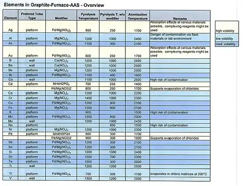 - ^ "Analytical Methods for Graphite Tube Atomizers" (PDF). agilent.com. Agilent Technologies. Archived (PDF) from the original on 2022-10-09.
