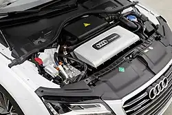 The electric drive system consists of a lithium-ion battery pack along with front and rear axle motors. The 8.8 kWh is sourced from the A3 Sportback e-tron and is located underneath the trunk floor. It can recharge in 4 hours off of a 230V household outlet, or in 2 hours from a 360V commercial charger. Each axle is powered by a permanent magnet synchronous AC motor generating 85 kW (114 hp; 116 PS) and 270 N⋅m (199 lb⋅ft) of torque, which can temporarily be boosted to 115 kW (154 hp; 156 PS), for a total of 170 kW (228 hp; 231 PS) and 540 N⋅m (398 lb⋅ft) of torque, or 230 kW (308 hp; 313 PS) in boost mode. This allows the vehicle to reach 62 mph (100 km/h) from standstill in just 7.9 seconds, and reach a top speed of 110 mph (180 km/h).