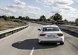 The Audi A7 h-tron quattro is a concept hydrogen/electric plug-in hybrid automobile, released by Audi AG[1] in the 2014 Los Angeles Auto Show.[2] The A7 h-tron quattro keeps the same recognizable features of the other A7 variants, but typically has "A7 h-tron" decals.