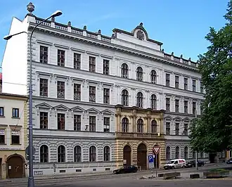 He distinguished himself primarily as a school architect. A real school in Olomouc (the Komenium), built in 1870–1874, was his first fully independent design. Through Schmidt's mediation, and support from the educator, Erasmus Schwab (1831–1917), he created a prototype for a country school building that was displayed at the 1873 Vienna World's Fair.[2] In 1876, he won a competition to establish a community school in Vimperk.