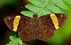 Aurivittia aurivittata,[1] the dark yellow-banded flat,[2] is a species of hesperiid butterfly which is found in South Asia and Southeast Asia.[3]