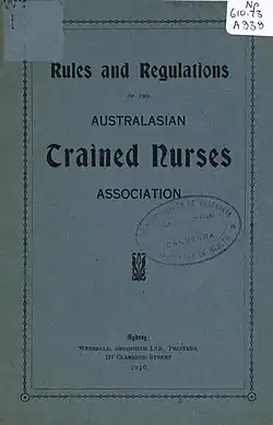 - ^ "Australasian Trained Nurses' Association". Sydney Morning Herald. 1900-07-07. Retrieved 2023-11-01.