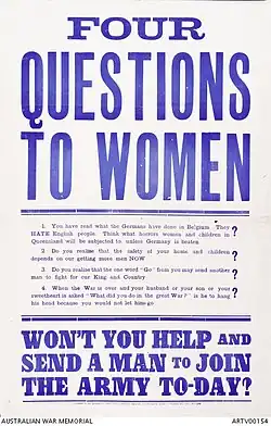 - ^ "WOMEN READY TO AID AND OFFER SERVICES". The Herald. No. 12, 088. Victoria, Australia. 3 August 1914. p. 12. Retrieved 27 June 2024 – via National Library of Australia.