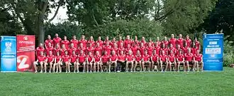 Austria participated in twenty-seven Summer Olympics between its debut at the 1896 Summer Olympics in Athens, Greece, and the 2016 Summer Olympics in Rio de Janeiro, Brazil. The nation chose table tennis player Liu Jia as its flagbearer in the opening ceremony and the sailing duo of Thomas Zajac and Tanja Frank for the closing ceremony.[3][4] They were one of the three nations who used more than one person to bear the flag in the closing ceremony.[5] A delegation of 71 athletes, 37 men and 34 women, travelled to Rio de Janeiro and competed across 22 sports.[6][7] Among the sports represented by its athletes, Austria marked its Olympic debut in golf (new to the 2016 Games), as well as its return to diving after 8 years, rowing and weightlifting after 12 years, and archery after 32 years. Austrian athletes have won a total of 86 medals at the Summer Olympic Games.[8]