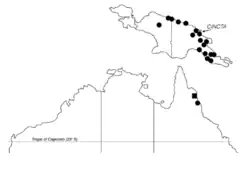 | Estimated current distribution of A. cincta in Australia and New Guinea | |