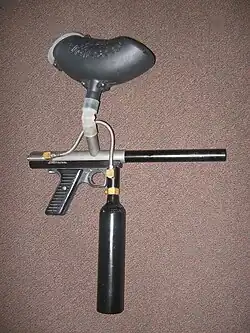 The Automag is a paintball marker designed by Tom Kaye and produced by Airgun Designs, Inc. It bears the distinction of being the first semi-automatic marker ever to win a paintball tournament. Team Swarm used Automags in their victory at the 1990 International Masters.[1]