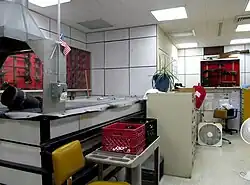 A firearm identification room. This room includes microscopes, a water tank for firing bullets and, an ABIS system. This room is used to identify and test firearms picked up as evidence.