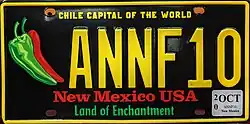 - ^ Chris McKee (March 12, 2018). "New Mexico chile license plate wins national award". KQRE. Retrieved January 25, 2019.