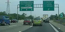 Autostrada A50 or Tangenziale Ovest di Milano ("Milan west ring road")[1] is an autostrada (Italian for "motorway") 31.8 kilometres (19.8 mi) long in Italy located in the region of Lombardy that connects the suburban area of Milan from south-east to north-west, managed by Milano Serravalle – Milano Tangenziali. It is a part of the E35 and E62 European routes.