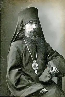 In the summer of 1925, Archbishop Theophan (Bystrov) arrived in Varna,[5] who had a great influence on the young Alexander Taushev: "I was deeply struck by his extraordinary appearance, unlike other bishops I had seen before, his prayerful ministry and wonderful sermon, which inspired me with the spirit of ancient patristic writings, which I was fond of reading. And suddenly I found out that he had been hired for the whole summer a summer cottage five kilometers from the city, where he would live every summer, coming from Sofia, where he settled in the building of the Bulgarian Holy Synod. A particularly exalted spiritual joy seized my heart in the hope that I would often be able to see this genuine saint of God, who struck me so much with his spirituality, and perhaps even converse with him. I immediately came up with the audacious idea of asking him to be my "elder" — a spiritual father in monasticism, which I resolutely decided to accept after seeing in Vladyka Theophan the ideal of a monk and a saint. <...> It is difficult for me to express in words what I felt on my first meeting with this great saint. He breathed upon me an extraordinary peace of mind and such a fragrance of genuine holiness, which I have never had to meet anywhere else, neither before nor after".[8] After that, 19-year-old Alexander Taushev decided "firmly, without the slightest doubt or hesitation" to become a monk.[9] Alexander Taushev often visited the cottage where Archbishop Theophan lived, got acquainted with his cell-attendants and became one of them. When Archbishop Theophan was outside of Bulgaria, Alexander Taushev corresponded with him.[10]