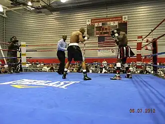 Super middleweight boxers Lennox Allen and Darnell Boone battle to an eight-round majority draw at Aviator Arena Sports and Recreation Facility, on Saturday, August 7, 2010.
