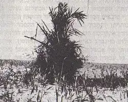 In June 1967, forty years after Avshalom Feinberg’s disappearance, Israeli forces advancing through the Sinai encountered a local Bedouin who claimed to have information of interest. He led them to a site marked by a single date palm, which he referred to as the kubr yehudi—“the Jew’s grave.” Upon digging beneath the tree, the soldiers uncovered Feinberg’s remains, intertwined with the tree’s roots. In Feinberg’s pocket, the dates given to him by Sarah Aaronsohn to eat on his journey had sprouted.[18][19]