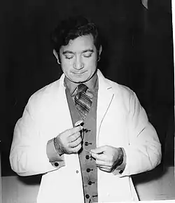 Ommaya was well known for his surgical skill and in 1977 he completed a difficult removal of a spinal arteriovenous malformation (AVM) which received attention in the press.[10] During the 18-hour operation the patient was placed in total body hypothermia and total circulatory arrest for 45 minutes. The hypothermia was needed to slow metabolism and protect the brain and organs from reduced oxygen supply while Ommaya surgically embolized and removed an AVM which was located near the medulla. Ommaya was the honorary physician to the President of Pakistan. Ommaya also appeared with Peter Ustinov, Nick Nolte and Susan Sarandon in the movie Lorenzo's Oil released in 1992.[11]