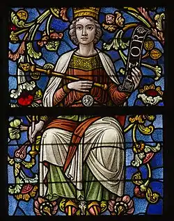 ![]() Azor in stained glass window: The Tree of Jesse, 1934 (detail), by Gustave Ladon. North transept, Church of Our Lady of Pamele, Oudenaarde, East Flanders, Belgium | |