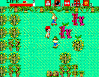 Gameplay involves the player trying to reach Paradise by exploring ten different lands, including desert, marshes, ruins, underground waterways and forest. While exploring you can collect weapons, by destroying enemies. A variety of in-game weapons can be found (fireballs, arrows, tornadoes, etc.), some more powerful than others. Some weapons can be used against bosses, which can take a certain number of hits from the player's default weapon, unless he has companions. The player's companions need to be hired with gold, and until he pays them they remain his enemies. The more powerful the companion, the more gold he requires to join the player's quest.