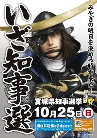 In a poll from Japanese fan magazine Newtype, Masamune was voted the 21st most-popular male anime character from the 2000s.[27] In July 2009, he took the 10th spot of the season.[28] In 2009, Masamune's image was used by Capcom to raise awareness of an election in Miyagi Prefecture, a video game first, noting in a press release that "warlord samurai turned video game sensation, Date Masamune is a household name in Miyagi Prefecture. This campaign aims to use the broad appeal Date Masamune has among the residents of the prefecture to draw attention to the election and increase the turnout of younger voters."[29]
