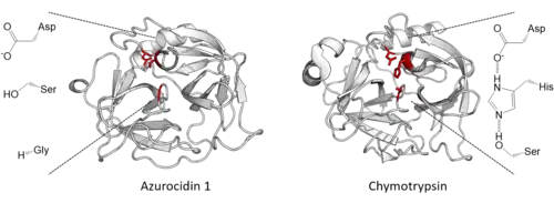 - ^ Soehnlein O, Lindbom L (2009). "Neutrophil-derived azurocidin alarms the immune system". Journal of Leukocyte Biology. 85 (3): 344–351. doi:10.1189/jlb.0808495. ISSN 1938-3673. PMID 18955543. S2CID 23637918.
