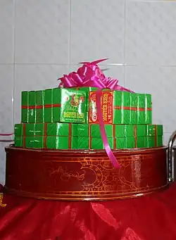 - ^ Erica J. Peters - Appetites and Aspirations in Vietnam: Food and Drink in the Long Nineteenth Century (AltaMira Studies in Food and Gastronomy) 2011 Page 58 "for promotions within the village hierarchies, or for a formal visit from a neighboring village. Bánh dầy were also perennial favorites at village gatherings, as were many kinds of rice cakes and sweet pastries, such as bánh cốm, bánh ngọt, bánh trái, and bánh đường."