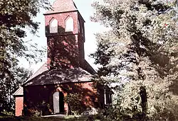 In the evening of 28 April 2000, the church was completely destroyed by a fire, which soon appeared to be an act of arson. Local press brought major attention to the fire when it appeared to be connected to satanism[1] and modern Paganism.[2] Many people missed the church, which had been a popular place for weddings and baptism.[3]