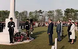 The Bény-sur-Mer Canadian War Cemetery (French: Cimetière militaire canadien de Bény-sur-Mer) is a burial ground containing predominantly Canadian soldiers killed during the early stages of the Battle of Normandy in the Second World War. It is located in, and named after, Bény-sur-Mer, in the Calvados department, near Caen, in lower Normandy. As is typical of war cemeteries in France, the grounds are landscaped and kept. Contained within the cemetery is a cross of sacrifice, a monument typical of memorials designed by the Commonwealth War Graves Commission.