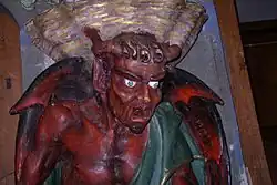In November 1896 Saunière commissioned the prestigious sculptor and painter Giscard of Toulouse (established in 1855) to decorate his church with new statues of the saints, Stations of the Cross, baptismal font with statues of John baptising Jesus (bearing Ecce Agnus Dei), a bas-relief of Jesus giving the Sermon on the Mount above the confessional, and a figure of a Devil supporting a holy water stoup surmounted by angels making the sign of the cross, bearing the inscriptions BS and Par Ce Signe Tu Le Vaincras ("By this sign you will conquer him"). All these items were chosen by Saunière from Giscard's catalogue. Although the 1896 edition of Giscard's catalogue has not survived, and later catalogues omit the statue of the Devil, its head bears a resemblance to the one found on the statue of the dragon being vanquished by Saint Michael that was also made by Giscard. The total sum involved was 2,500 francs, paid in annual instalments of 500 francs by Saunière beginning at the end of December 1897.