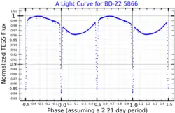 - ^ a b c d e f Shkolnik, Evgenya (2008). "BD -22 5866: A Low-Mass, Quadruple-lined Spectroscopic and Eclipsing Binary". The Astrophysical Journal. 682 (2): 1248–1255. arXiv:0805.0312. Bibcode:2008ApJ...682.1248S. doi:10.1086/589850. S2CID 15460554.