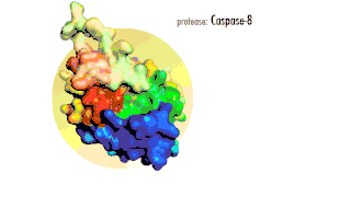 Caspase-8 (as surface) cleavage of Bid (as ribbon) (visualization by Kosi Gramatikoff)