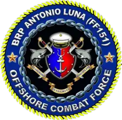 BRP Antonio Luna (FF-151) is the second ship of the Jose Rizal class of guided missile frigates in service with the Philippine Navy.[1] She is able to conduct multi-role operations such anti-surface warfare (ASUW), anti-submarine warfare (ASW), and limited anti-air warfare (AAW).[2] She is one of the service's primary warships until the introduction of new and more powerful contemporaries.