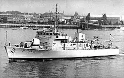 BRP Apolinario Mabini (PS-36) is the second ship of the Jacinto-class corvettes currently assigned to the Offshore Combat Force of the Philippine Fleet. She is one of few ships in the Philippine Navy equipped with modern systems after the completion of combat, navigation and weapon systems upgrade of her class in August 2019.[4] She is named after Apolinario Mabini, a hero of the Philippine revolution and a former prime minister. She was originally called HMS Plover (P240) during her service with the Royal Navy.