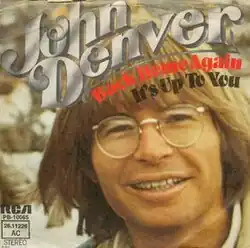 "Back Home Again" is a country song written and performed by the American singer-songwriter John Denver. "Back Home Again" was released as a single from his album of the same name in 1974.