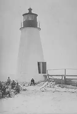 The light was damaged by Confederate raiders in 1862, but was back in service the following year. But the remainder of the century saw a continuing battle against erosion, and riprap was laid around the base of the tower several times between 1868 and 1888. In 1894 a second story was added to the keeper's house, but this served only until 1914, when the house facing destruction due to beach erosion was demolished, with the light being automated the following year. The Back River Light was discontinued in 1936. Twenty years later the abandoned tower, by then in disrepair and completely surrounded by water due to erosion, collapsed during Hurricane Flossy, leaving only a pile of rubble to mark the spot.