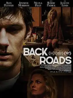 Back Roads is a 2018 American drama film directed by Alex Pettyfer in his directorial debut. The screenplay by Tawni O'Dell and Adrian Lyne was adapted from O'Dell's bestselling novel of the same name. Starring Alex Pettyfer, Jennifer Morrison, Nicola Peltz, Robert Patrick and Juliette Lewis, the film centers on a young man living in the Pennsylvania backwoods who must care for his three younger sisters after his mother is arrested for murdering his father.