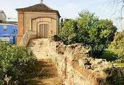 The bastion is also known as the "Bastion of Memory" in honor of General Menacho, who was killed in 1811 while defending Badajoz from French forces during the Spanish War of Independence.[35] An inscription commemorating Menacho was placed on the bastion in 1852 at the location of his death. The monument, designed by Captain Julio Carande and executed by marble workers Almendro and Zoido, was inaugurated on May 2, 1893. It featured marble from Alconera for the pedestal and staircases, marble from Borba for the main structure, and Italian marble for the inscriptions. Although the original four marble lions that were part of the monument are now missing, part of the monument remains preserved.[36]
