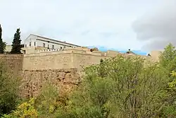 Number 5 in the Plan of Bastions. It is located between the bastion of Santa María and the now disappeared bastion of San Juan, in the southern part of the bastioned enclosure and is bounded by Estadiu street and the Ronda del Pilar.[30] Originally constructed in the 17th century, it was reinforced during the 18th century with additional defensive features, including rifle and cannon embrasures. A total of sixteen embrasures were built: four at the front and six on each flank or curtain wall. The left flank was further equipped with rifle galleries and arrowslits to enhance its defensive capabilities.[10]