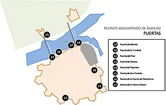 - ^ a b "Puertas conservadas en las murallas de la ciudad". monumentosdebadajoz.es (in Spanish). Retrieved 17 August 2016.