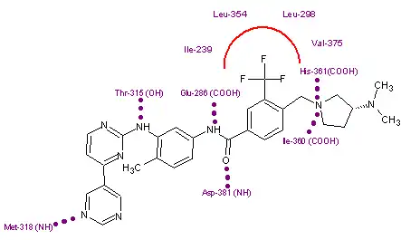 - ^ Horio T, Hamasaki T, Inoue T, Wakayama T, Itou S, Naito H, et al. (May 2007). "Structural factors contributing to the Abl/Lyn dual inhibitory activity of 3-substituted benzamide derivatives". Bioorganic & Medicinal Chemistry Letters. 17 (10): 2712–7. doi:10.1016/j.bmcl.2007.03.002. PMID 17376680.
