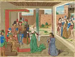 - "Bagoas Pleads on Behalf of Nabarzanes," illuminated parchment by the Master of the Jardin de vertueuse consolation, in the collection of the J. Paul Getty Museum