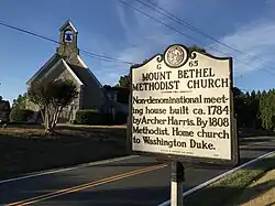 "Non-denominational meeting house built ca. 1784 by Archer Harris. By 1808 Methodist. Home church to Washington Duke."[5] - Willie P. Mangum - NC Highway Marker G-28