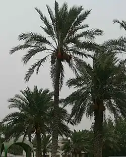 Most cultivation in Bahrain was confined to palm trees; vegetables and fodder were only grown in small amounts.[46] Palms were mainly located in the northern shores which compromised the cultivable land in the island.[47] Unlike the pastoral nomads of central Arabia who lived off the camel, Bahrainis lived off the palms; its dates were a basic in their diet, branches used for construction of houses and fish traps, flowers and buds for medicine and leaves for making baskets.[48] Local culture was also deeply affected by palms; many stories, songs, myths and even classification of persons revolved around them.[49] Cultivation of palms required full-day work during all sessions of the year.[24] Most cultivators were Shia who engaged all members of their families in the job: children and adults, male and female.[24] It was their only source of subsistence.[43]