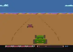 Baja Buggies is a desert-themed racing video game written by Dan Ugrin for Atari 8-bit computers.[1] It uses a third-person, 2.5D perspective. The game was originally developed and sold as Night Rally by Arcade Plus before the company folded, then it was revamped and became the first release from Gamestar.[2][3] Gamestar went on to publish a series of sports games for the Atari 8-bit and Commodore 64 before becoming a label of Activision.